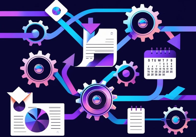 Crie fluxos automáticos para tarefas repetitivas, desde recebimento de leads até organização de documentos e agendamentos.
